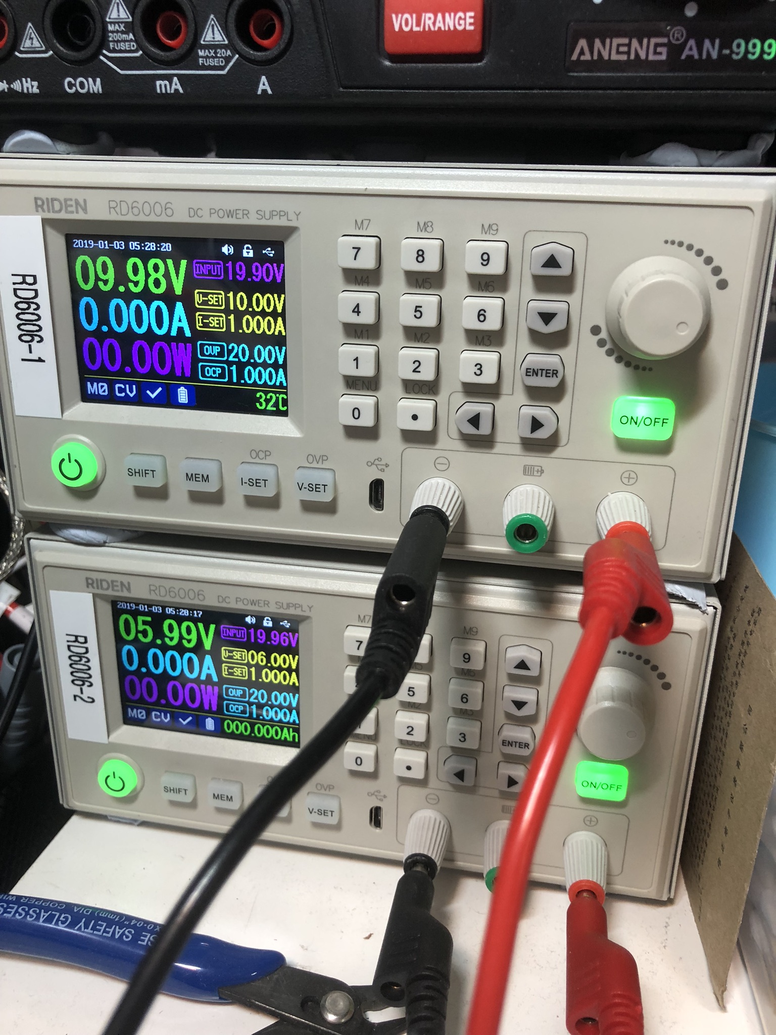We use the Riden RD6006 Bench Power Supplies to power our test circuits.