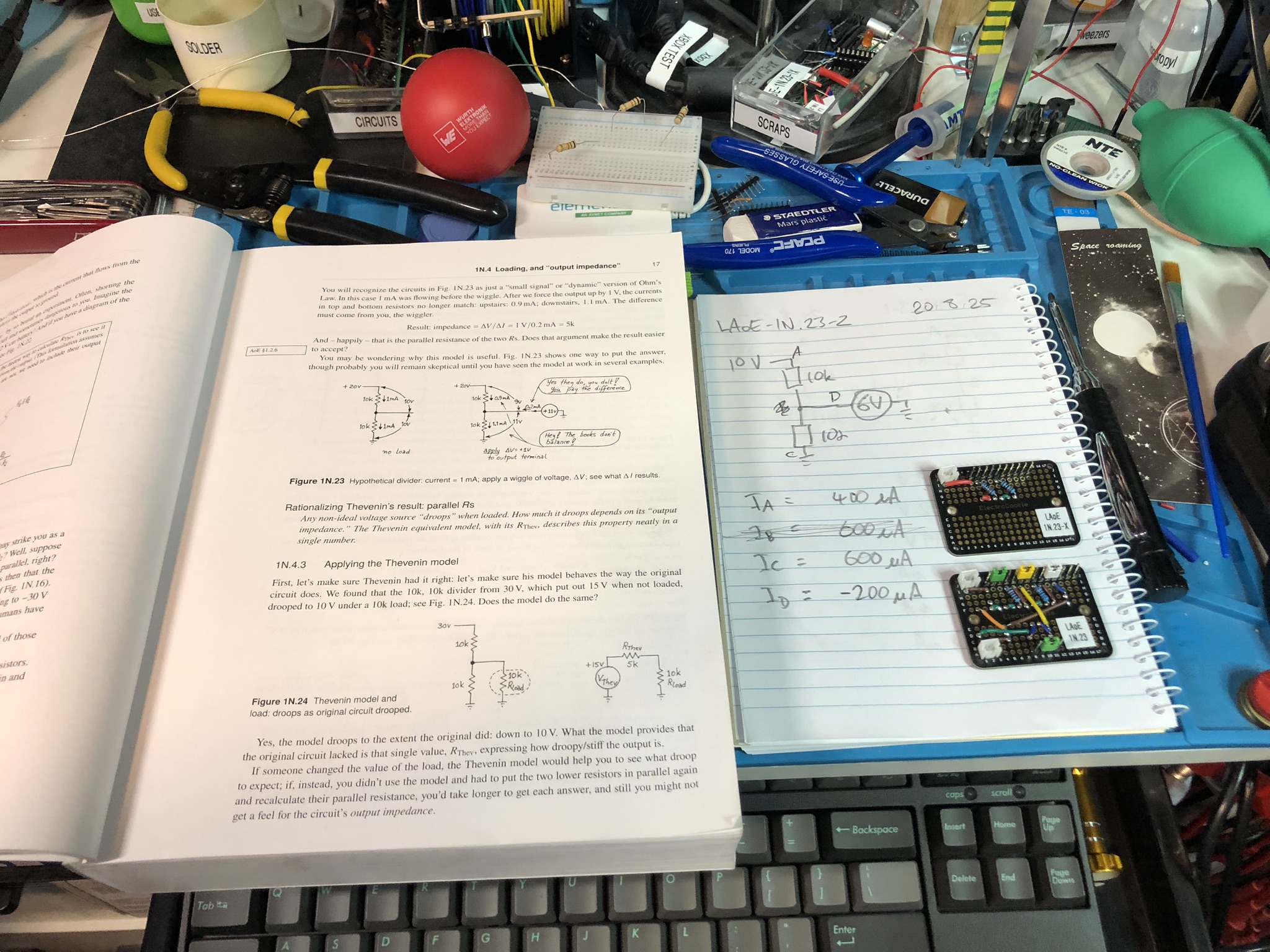 In this video we test a circuit and its Thévenin model to see that they behave as expected. They do! But I’m still trying to get my head around all of the details…